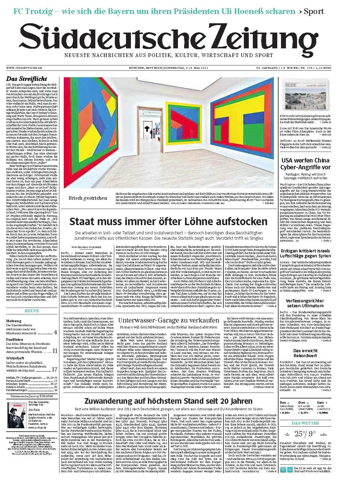 Süddeutsche Zeitung vom Mittwoch/Donnerstag, 08./09. Mai 2013