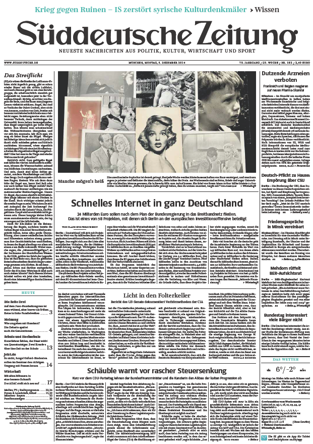 Süddeutsche Zeitung vom Montag, 08. Dezember 2014