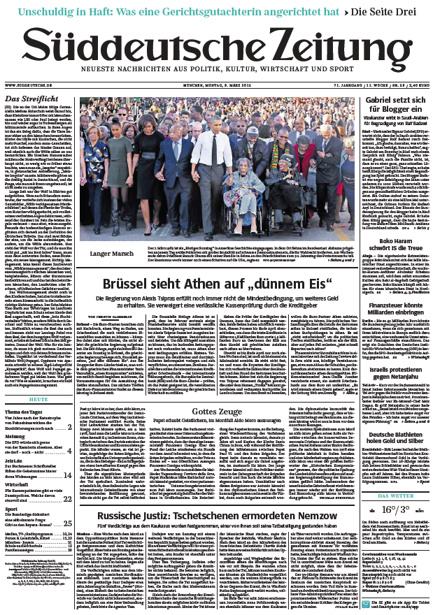 Süddeutsche Zeitung vom Montag, 09. März 2015