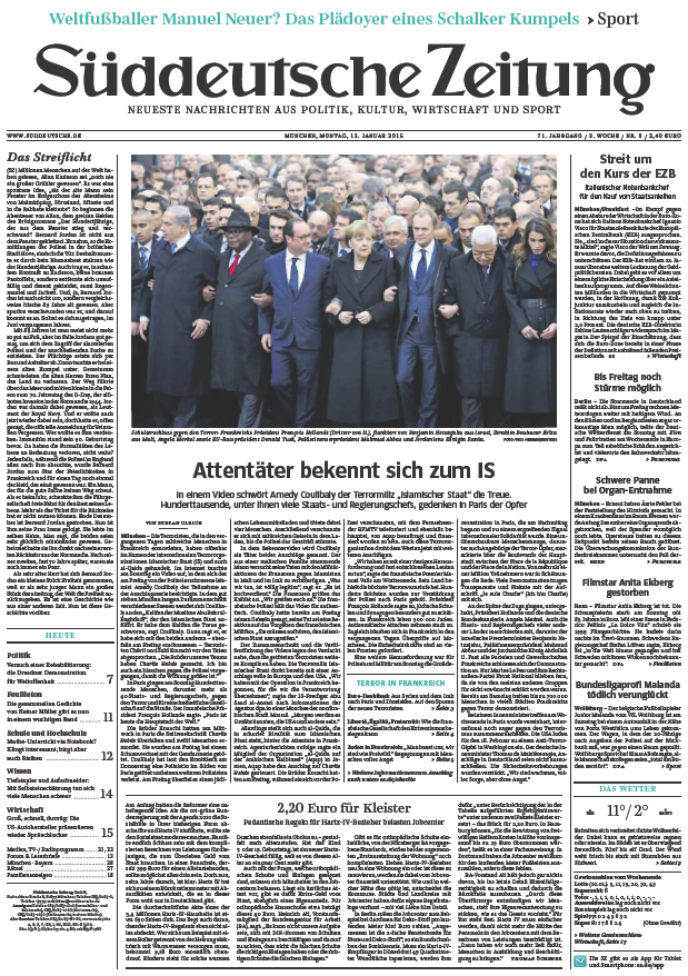 Süddeutsche Zeitung vom Montag, 12. Januar 2015