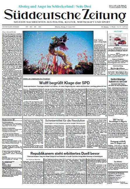 Süddeutsche Zeitung vom Montag, 23. Januar 2012