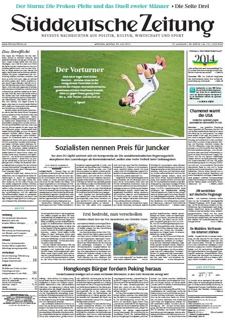 Süddeutsche Zeitung vom Montag, 23. Juni 2014
