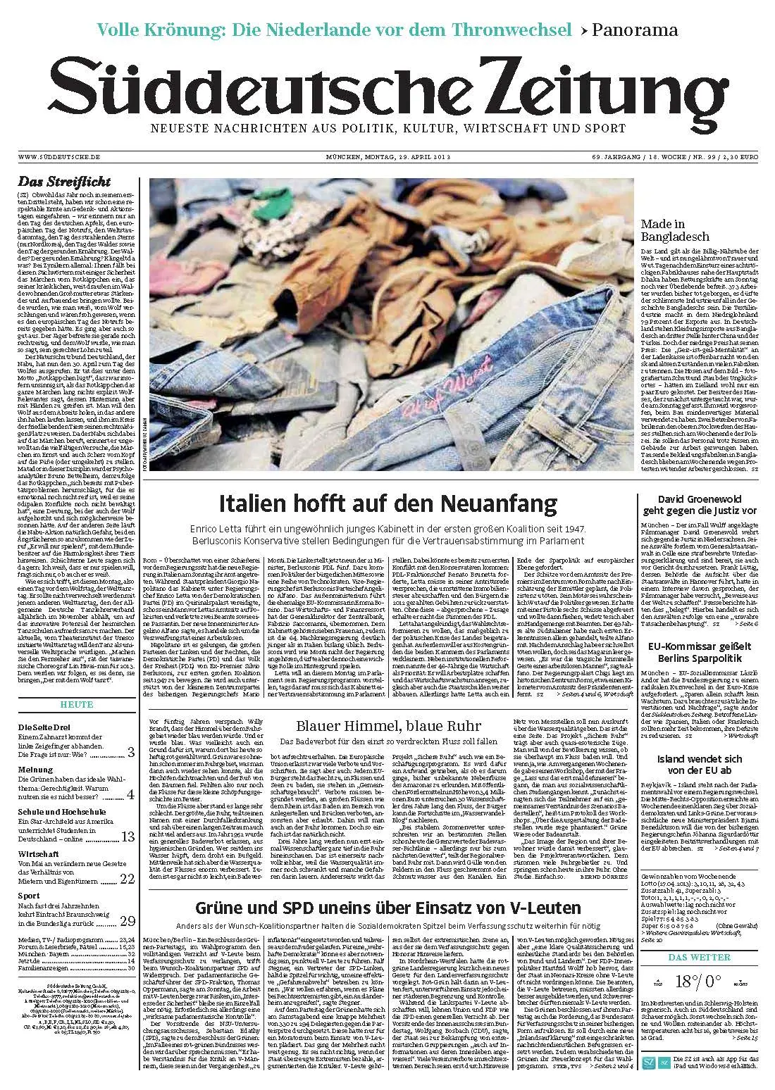 Süddeutsche Zeitung vom Montag, 29. April 2013