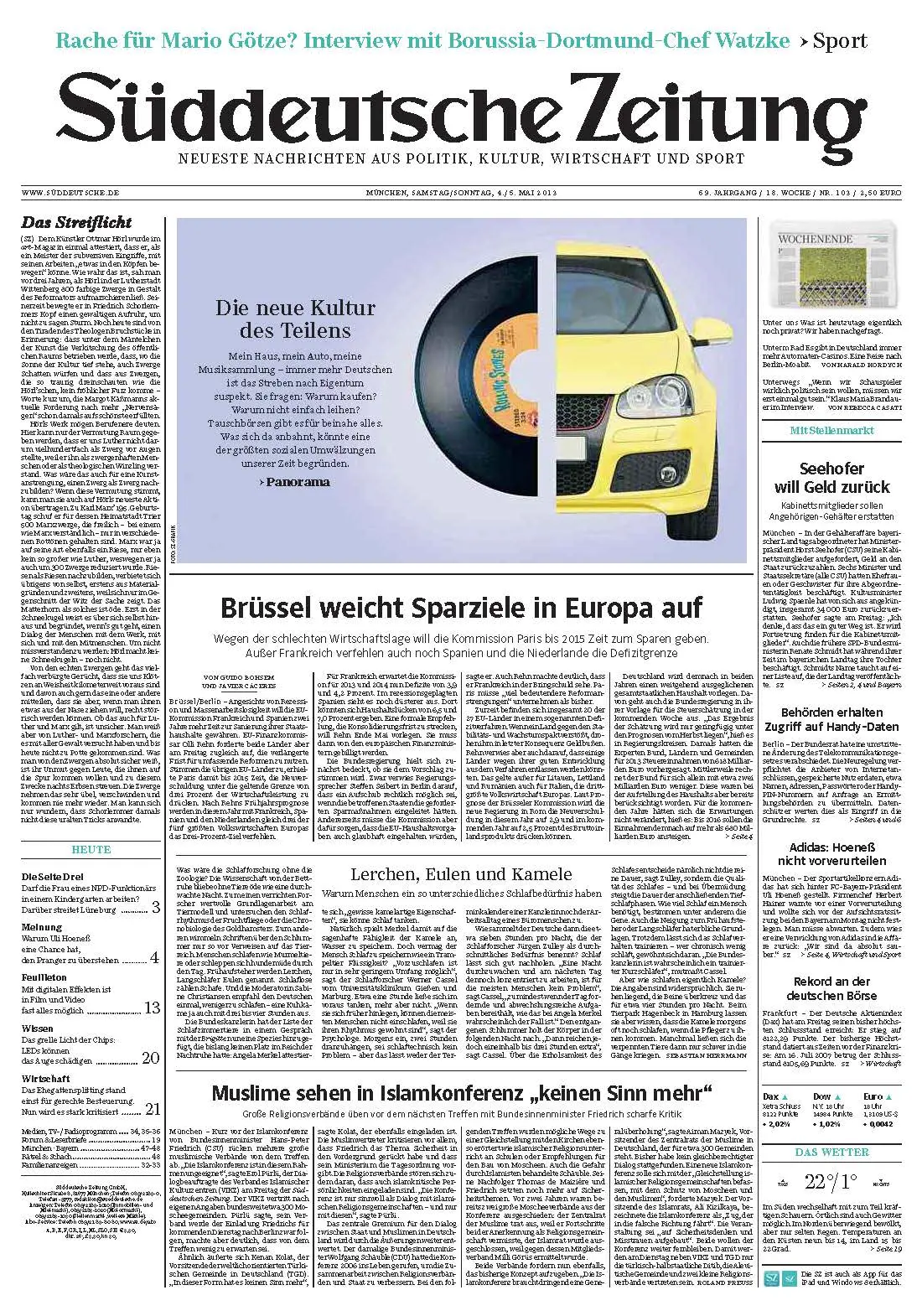 Süddeutsche Zeitung vom Samstag, 04. Mai 2013