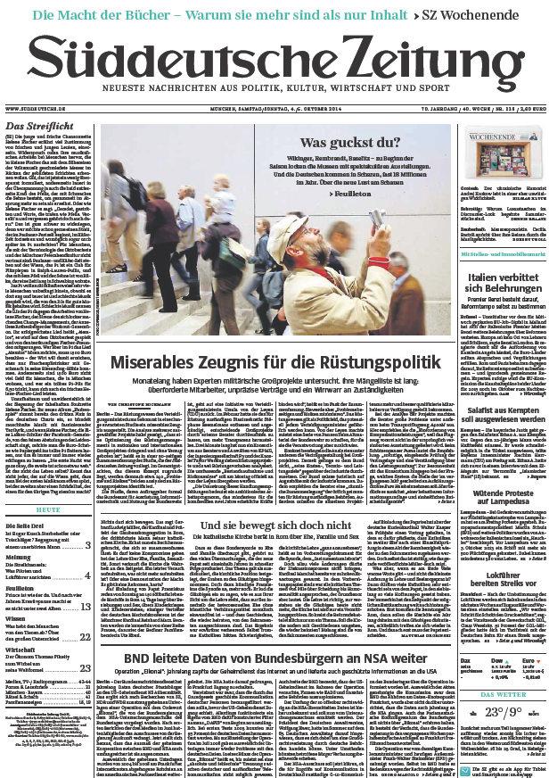 Süddeutsche Zeitung vom Samstag, 04. Oktober 2014