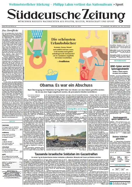 Süddeutsche Zeitung vom Samstag, 19. Juli 2014