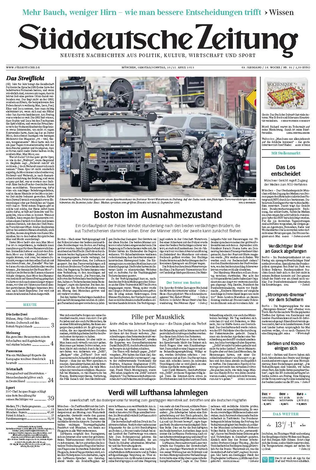 Süddeutsche Zeitung vom Samstag, 20. April 2013