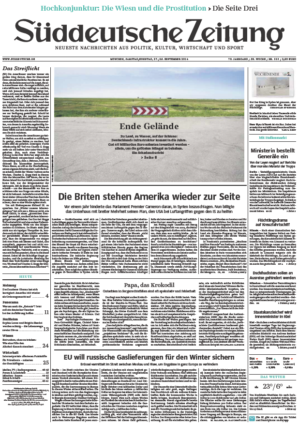 Süddeutsche Zeitung vom Samstag, 27. September 2014