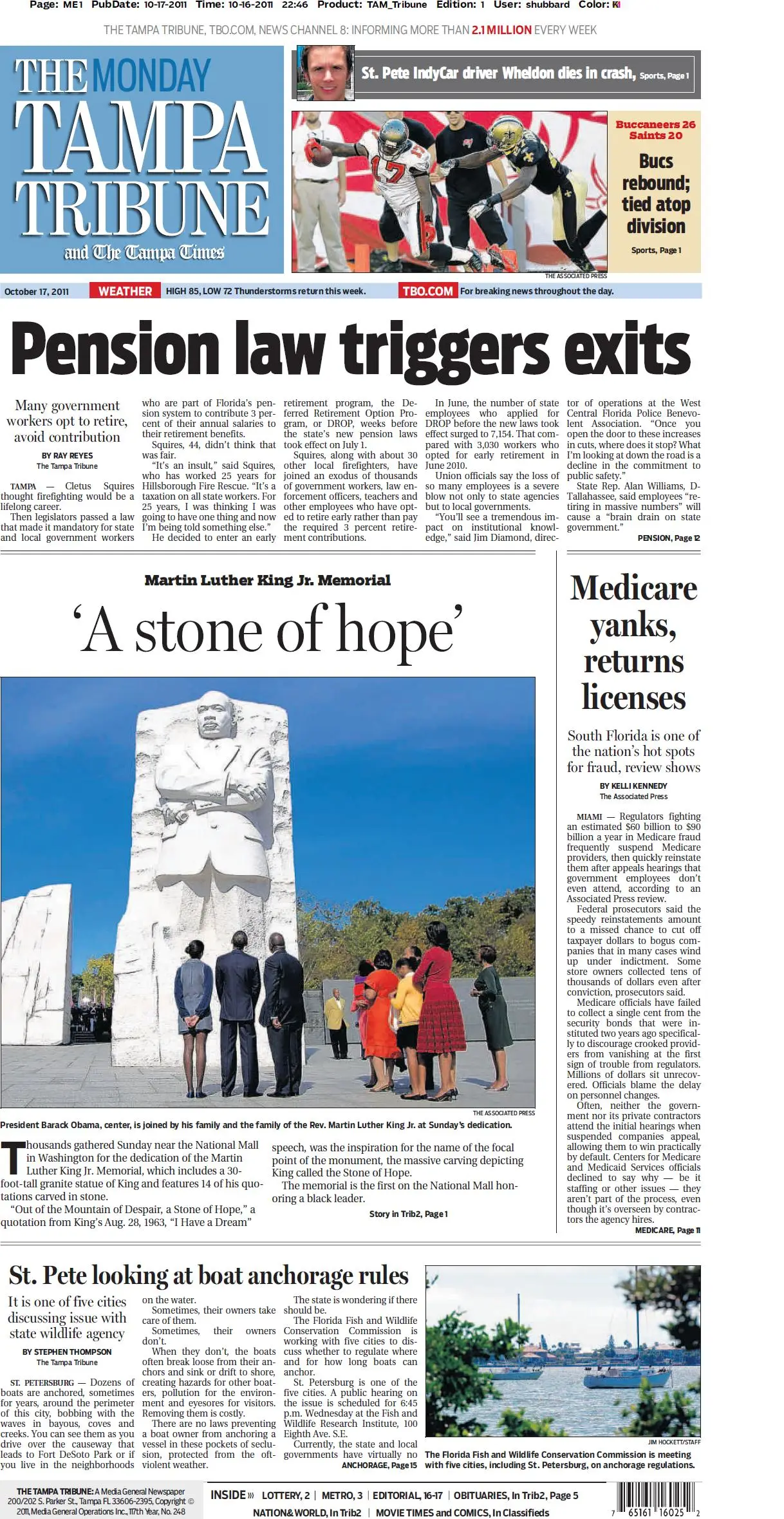 TAMPA TRIBUNE 17 OCTOBER 2011