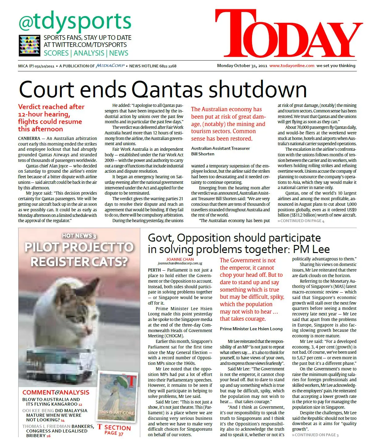 TODAY 31 OCTOBER 2011