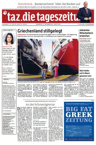 Tageszeitung TAZ vom 27 September 2012