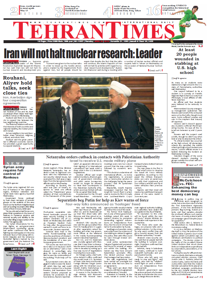 Tehran Times, 10.04.2014