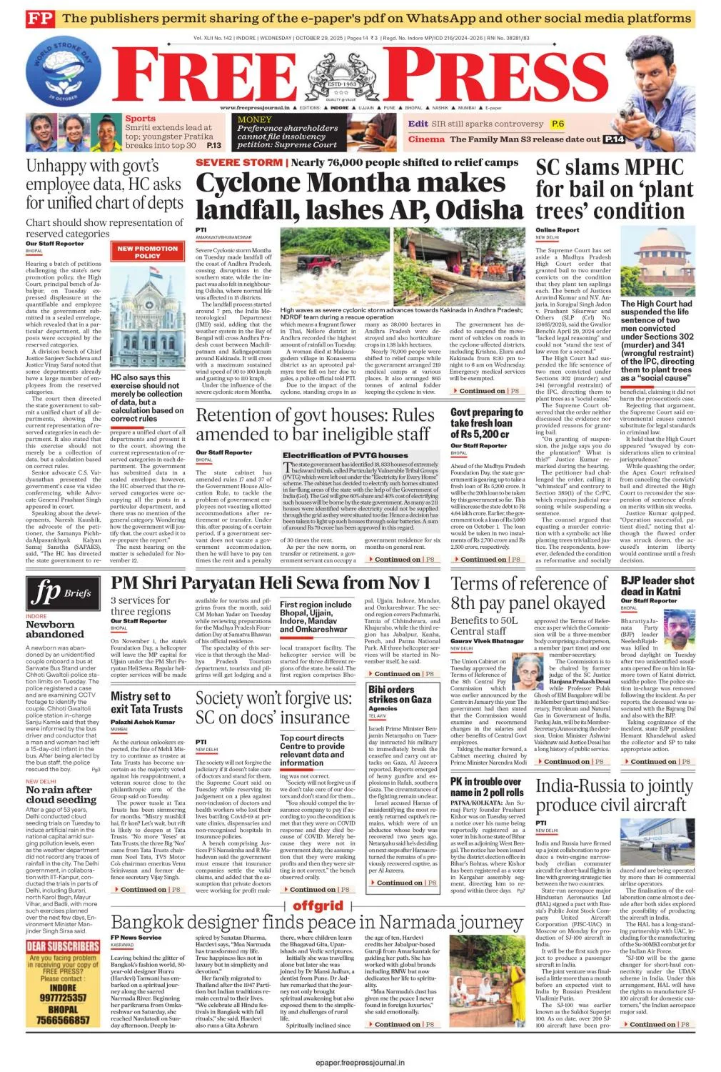 The Free Press Journal Bhopal - 29 October 2025