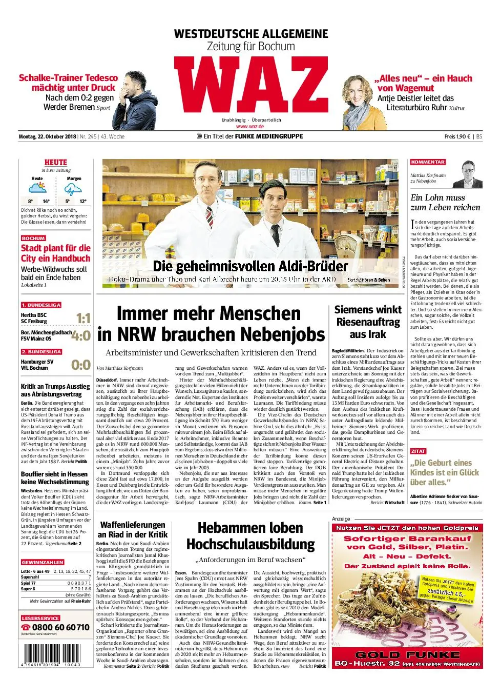 WAZ Westdeutsche Allgemeine Zeitung Bochum-Süd - 22. Oktober 2018