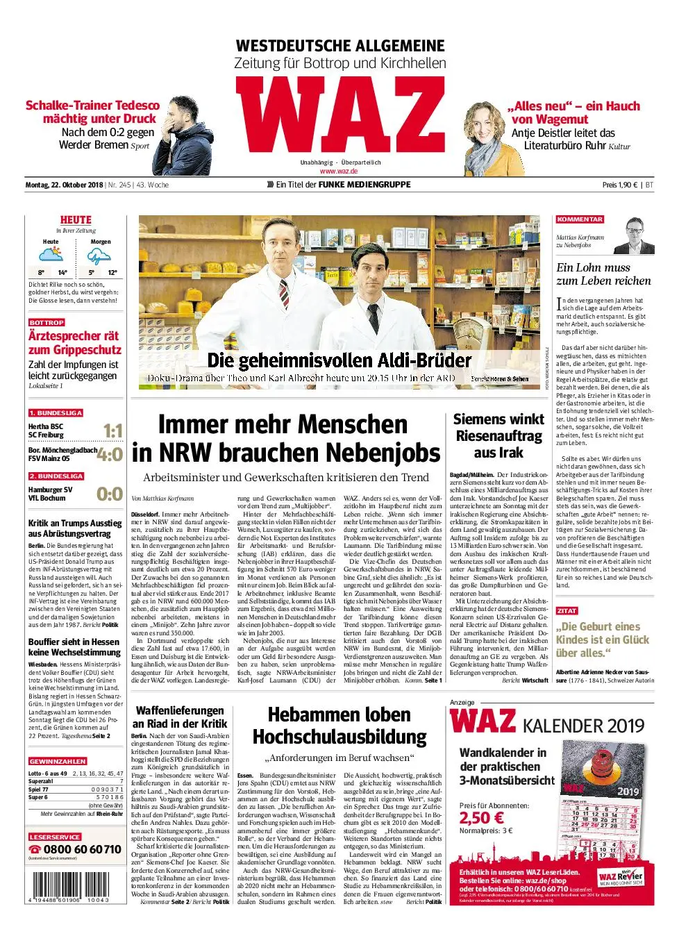WAZ Westdeutsche Allgemeine Zeitung Bottrop - 22. Oktober 2018