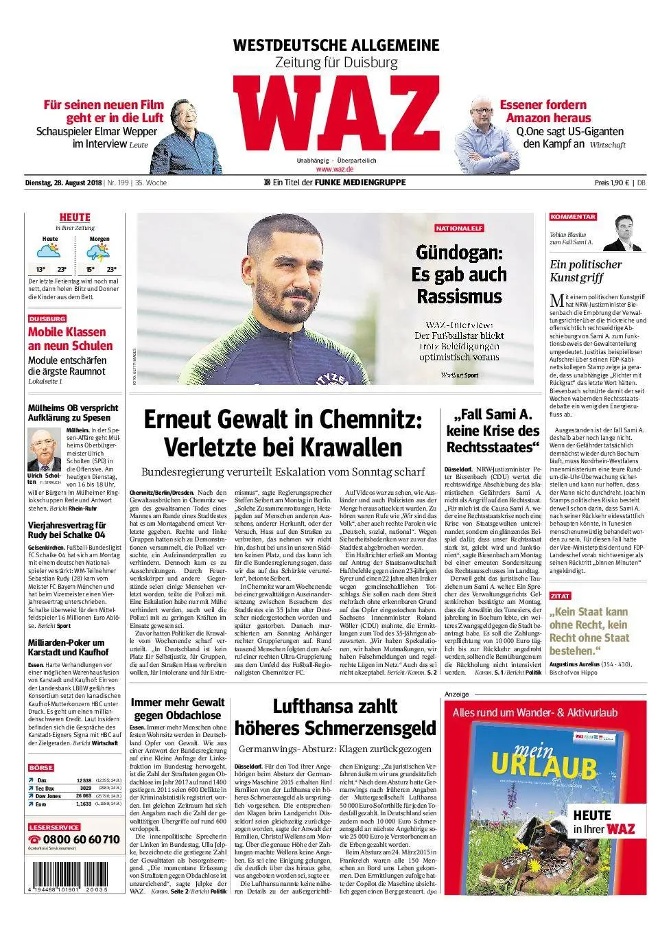 WAZ Westdeutsche Allgemeine Zeitung Duisburg-Mitte - 28. August 2018