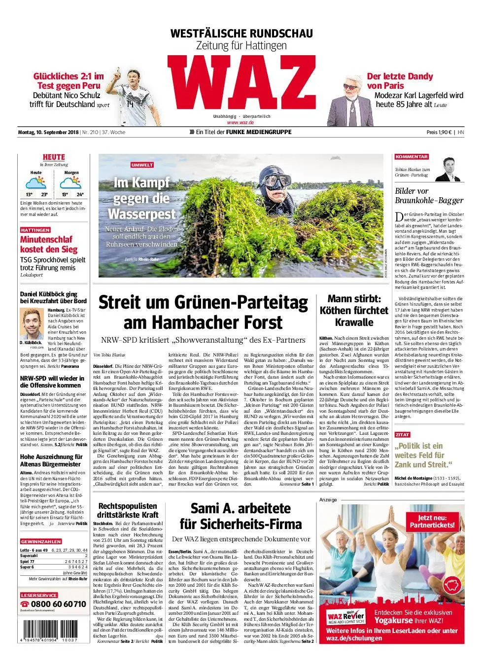 WAZ Westdeutsche Allgemeine Zeitung Hattingen - 10. September 2018