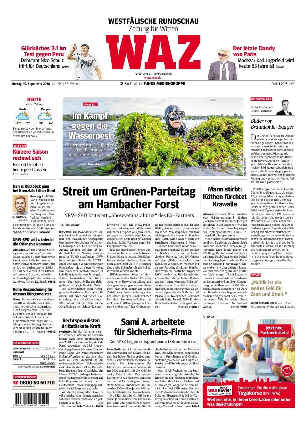 WAZ Westdeutsche Allgemeine Zeitung Witten - 10. September 2018