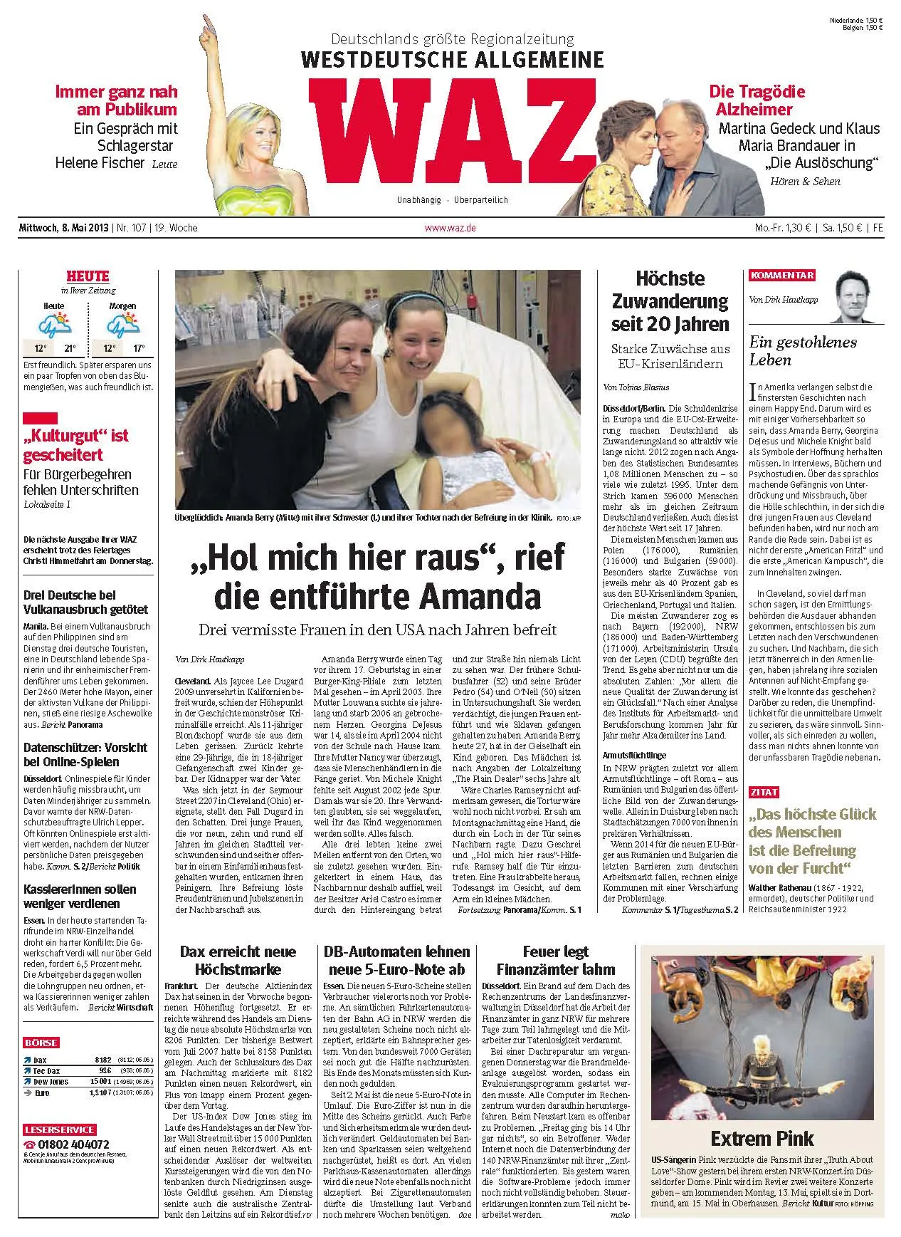 Westdeutsche Allgemeine Zeitung (WAZ) vom Mittwoch, 08. Mai 2013