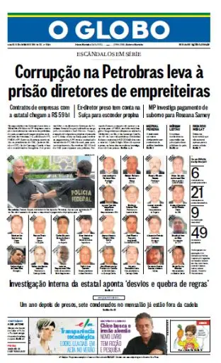 * Corrupção na Petrobras leva à prisão diretores de empreiteiras.