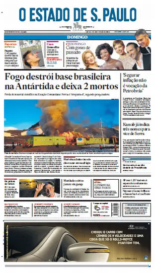 * Fogo destrói base brasileira na Antártida e deixa 2 mortos.