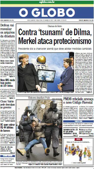 * Contra 'tsunami' de Dilma, Merkel ataca protecionismo.