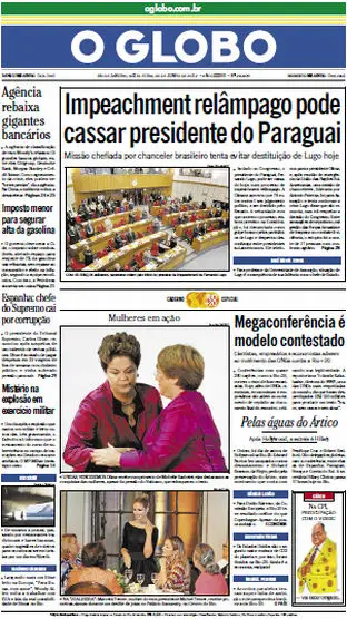 * Impeachment relâmpago pode cassar presidente do Paraguai.