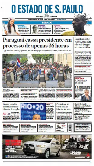 * Paraguai cassa presidente em processo de apenas 36 horas.