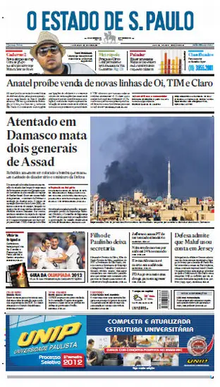 Jornal O Estado do São Paulo 19 de julho de 2012 - Quinta