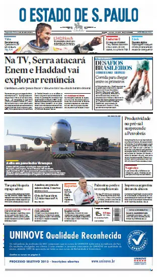 Jornal O Estado de São Paulo - 15 de outubro de 2012 - Segunda