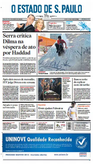 Jornal O Estado de São Paulo - 01 de outubro de 2012 - Segunda