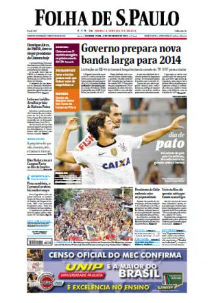 Jornal Folha de São Paulo - 4 de fevereiro de 2013 - Segunda