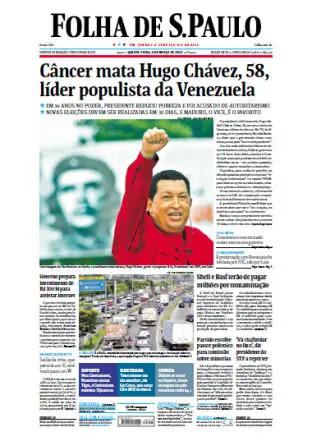 * Câncer mata Hugo Chávez, 58, líder populista da Venezuela.