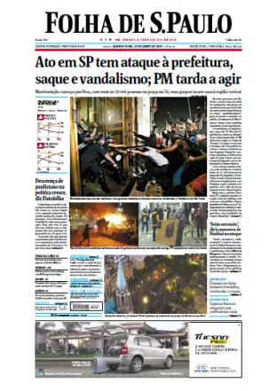 * Ato em SP tem ataque à prefeitura, saque e vandalismo;PM tarda a agir.