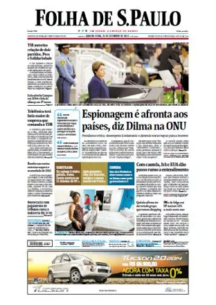 Jornal Folha de São Paulo - 25 de setembro de 2013 - Quarta