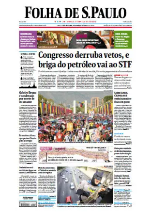 * Congresso derruba vetos, e briga do petróleo vai ao STF.