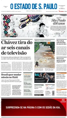 Jornal O Estado de SP em PDF, Segunda, 25 de Janeiro de 2010