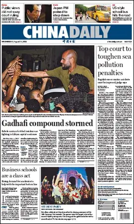 The China Daily is an English-language daily newspaper published in the People's Republic of China.