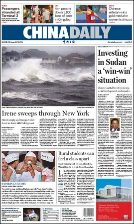 The China Daily is an English-language daily newspaper published in the People's Republic of China.