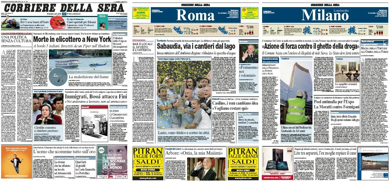 Corriere della Sera Nazionale piu' edizioni di Roma e Milano (09/08/2009)