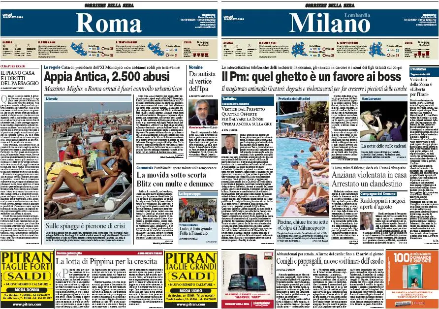 Corriere della Sera edizioni di Roma e Milano (10/08/2009)