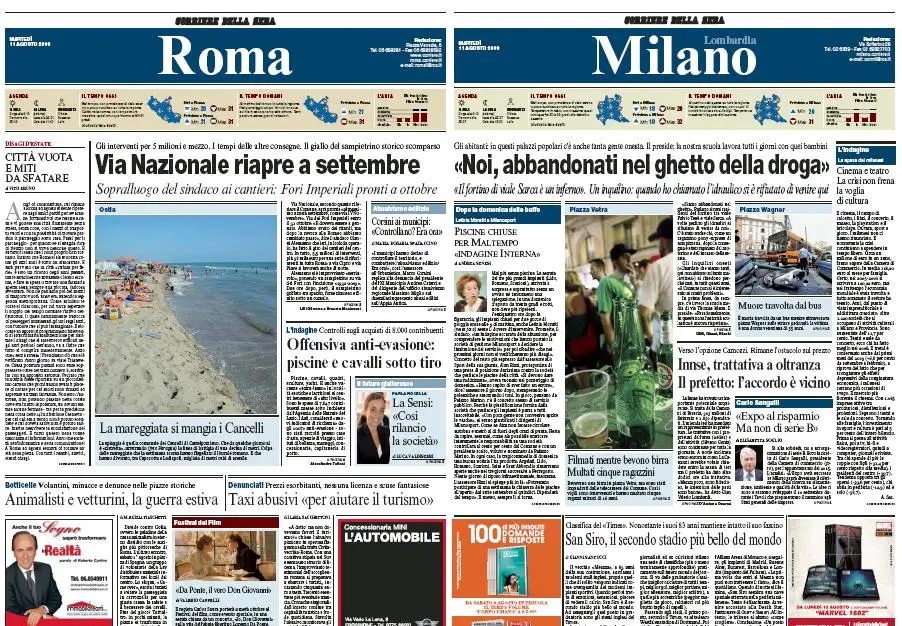 Corriere della Sera edizioni di Roma e Milano (11/08/2009)