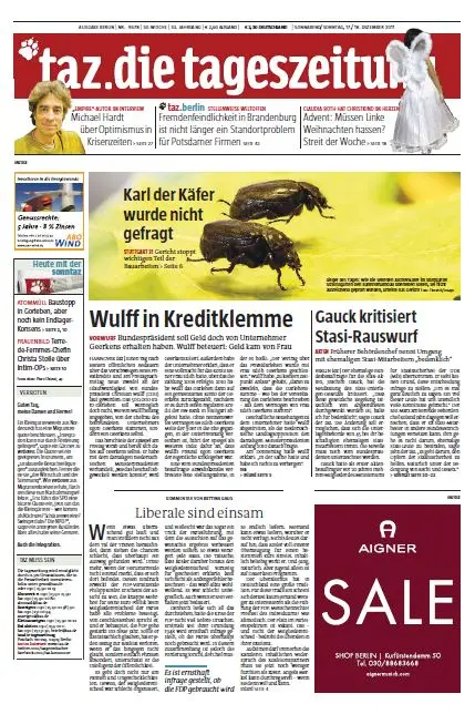 die tageszeitung (taz) vom Samstag/Sonntag, 17./18. Dezember 2011