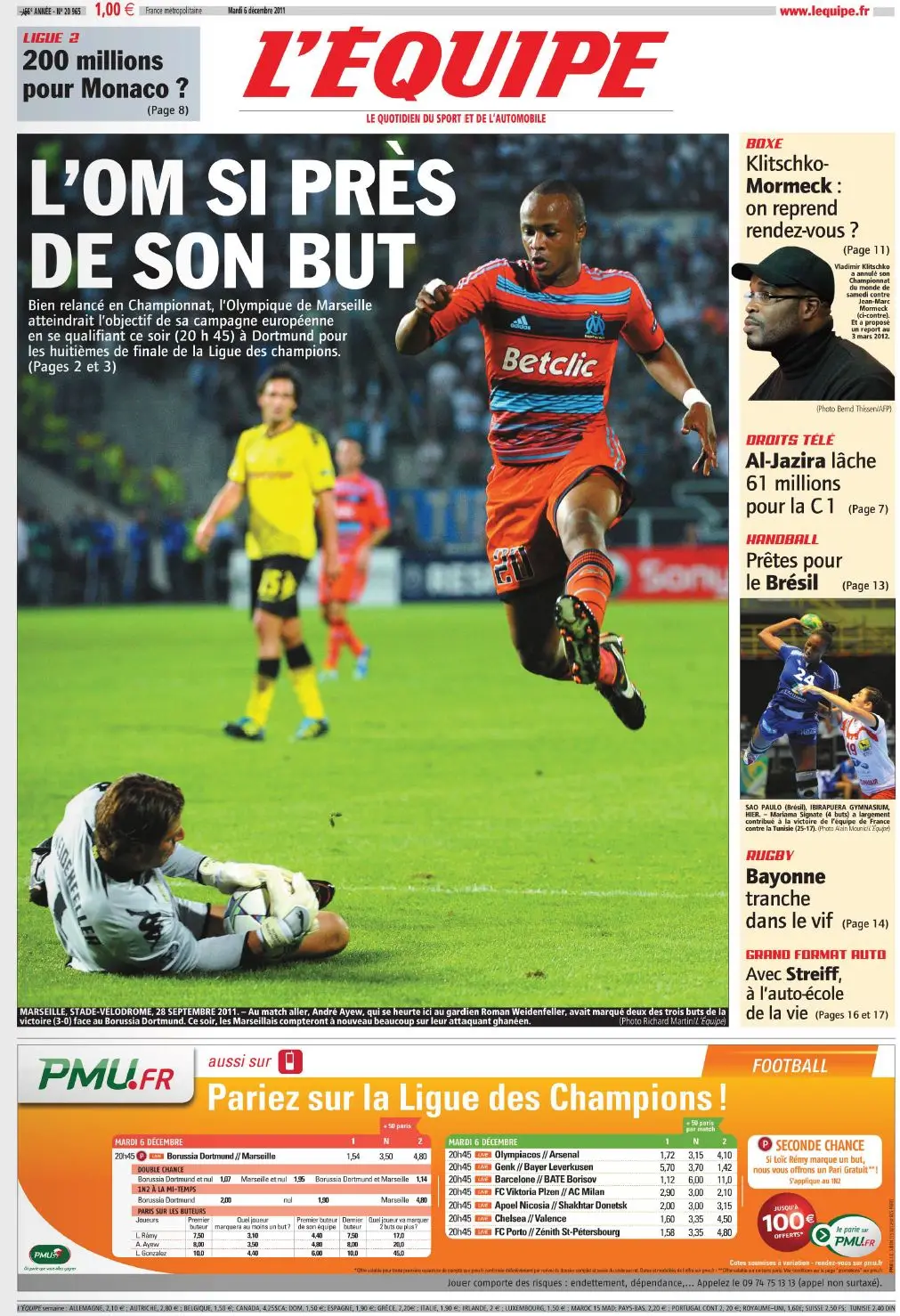 L'Equipe du Mardi 6 Décembre 2011