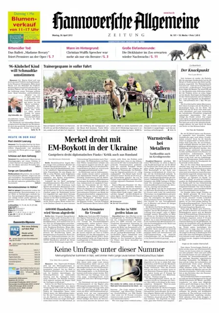Hannoversche Allgemeine Zeitung - 30.04.2012