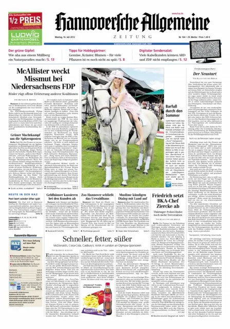 Hannoversche Allgemeine Zeitung - 16.07.2012
