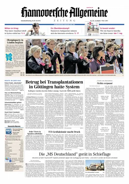Hannoversche Allgemeine Zeitung - 28.07.2012