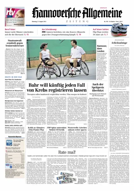 Hannoversche Allgemeine Zeitung - 21.08.2012