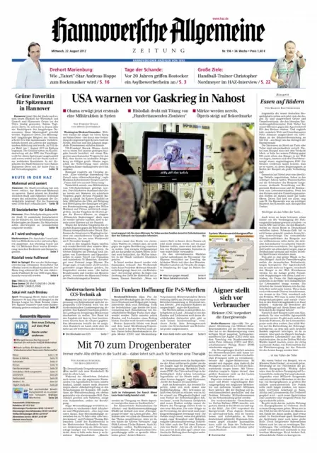 Hannoversche Allgemeine Zeitung - 22.08.2012