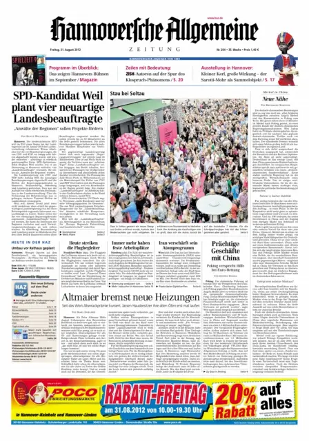 Hannoversche Allgemeine Zeitung - 31.08.2012